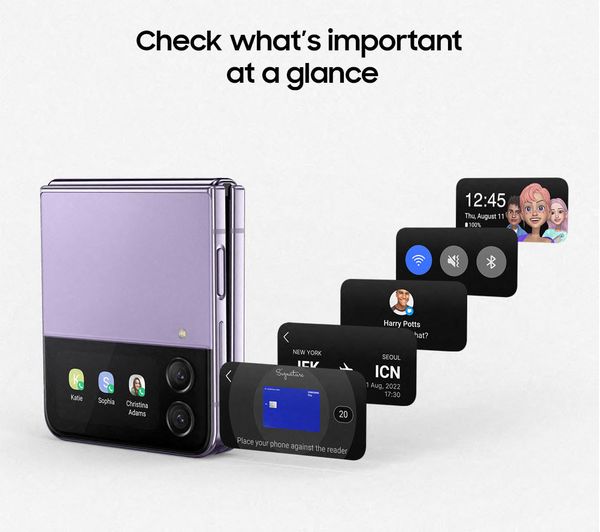 This unlocked Galaxy Z Flip4 works with any SIM card, giving you complete network freedom. Fold it closed to slip easily into your pocket, or open it up to enjoy a smooth, vibrant display for apps, photos, and entertainment.