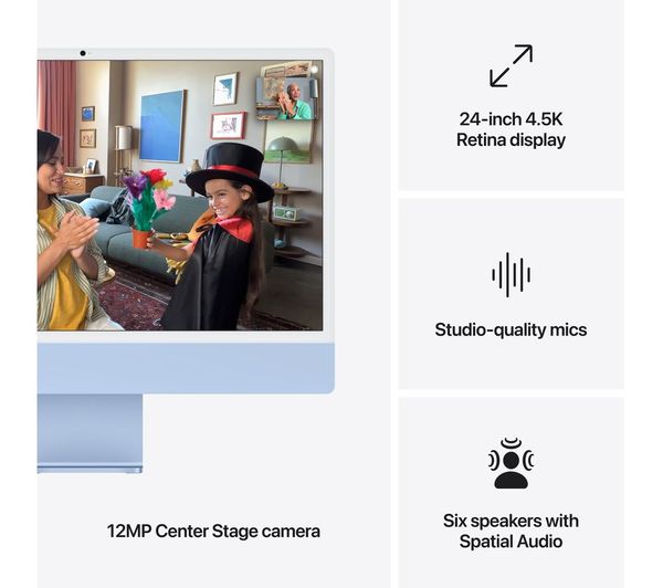 APPLE iMac 4.5K 24" (2024) - M4, 16GB RAM, 256GB SSD, 10 CPU / 10 GPU, Blue - Pristine