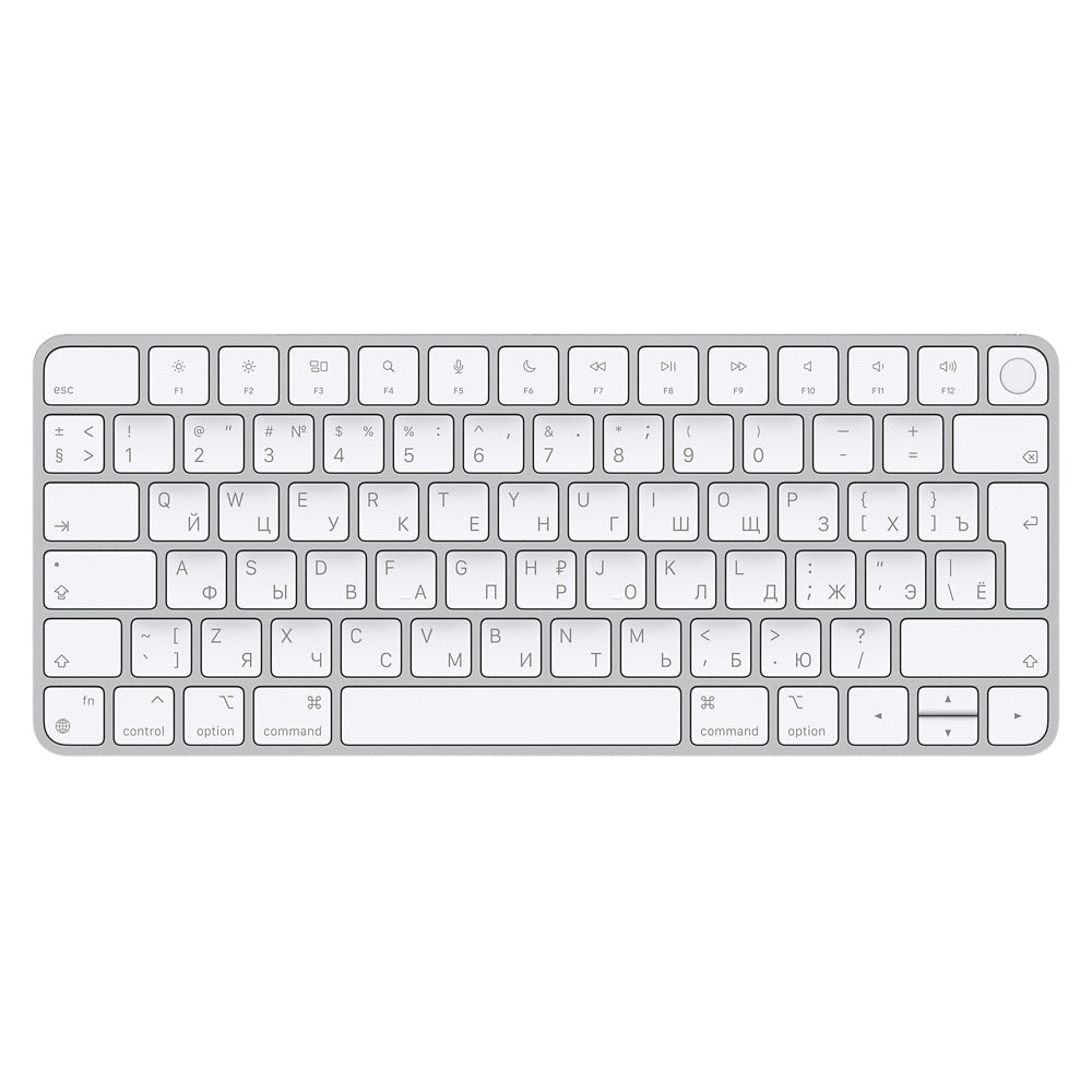 The Apple Magic Keyboard with Touch ID in White with Russian layout offers secure authentication and a comfortable, precise typing experience. Perfect for Mac with Apple silicon, it brings fast wireless connectivity and Touch ID for quick unlocking and secure purchases.