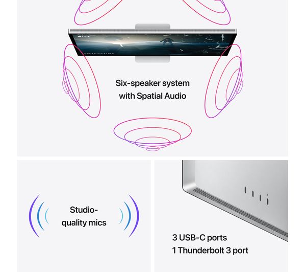 A premium 5K display with studio-grade visuals, audio, and camera – the perfect upgrade to any Apple workspace.