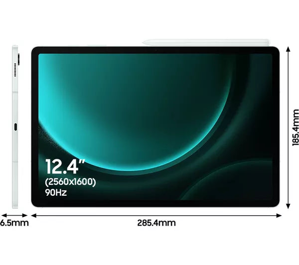 SAMSUNG Galaxy Tab S9 FE+ 12.4" 5G Tablet - 128 GB, Mint, Android 13, Wide Quad HD screen, 128 GB storage: Perfect for saving pretty much everything, Add more storage with a microSD card, Battery life: Up to 20 hours.
