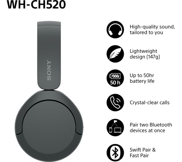 ✅ Sony WH-CH520 Wireless Bluetooth Headphones – Black